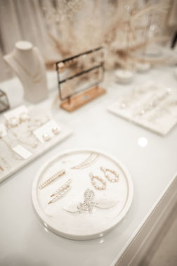 Um den Bridallook zu vervollständigen, haben wir viele tolle Must-Haves in unseren Stores. Neben Brautschmuck und den schönsten Brautschuhen gehören zum Beispiel auch die perfekten Haarteile zu unserem Sortiment. Darüber hinaus findet man bei uns auch viele Teile, die man immer tragen kann.