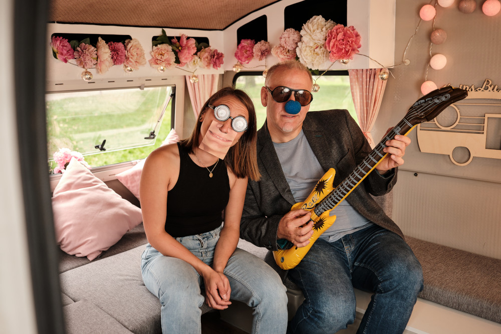 Außen retro, innen moderne Technik mit Touchscreen und Fotodrucker inkl. Druckflatrate ohne lästigen Papierwechsel und mit Download aufs Handy vor Ort. Dazu gibt‘s natürlich jede Menge originelle „Props“ zum Verkleiden und Verunstalten und eine persönliche Betreuung.