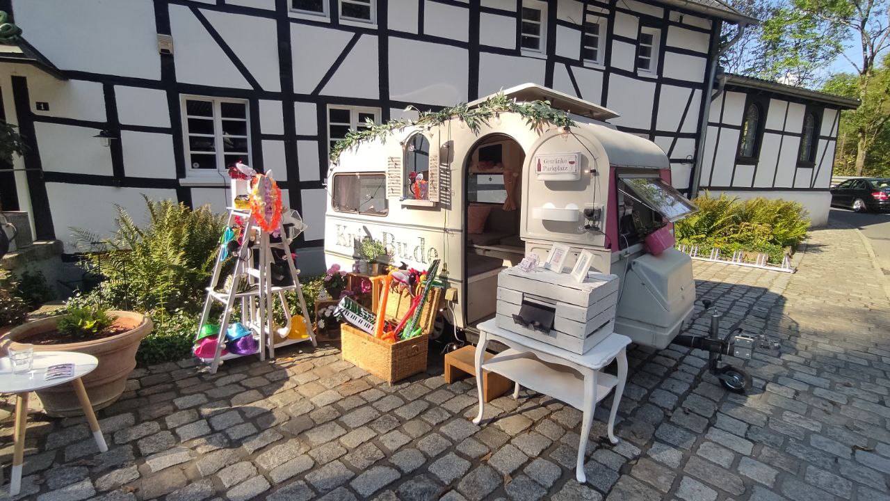 Stellt Eure Fotobox doch direkt vor die Türe – unser stylischer Retro-Wohnwagen macht das Rudelselfie zum besonderen Erlebnis.