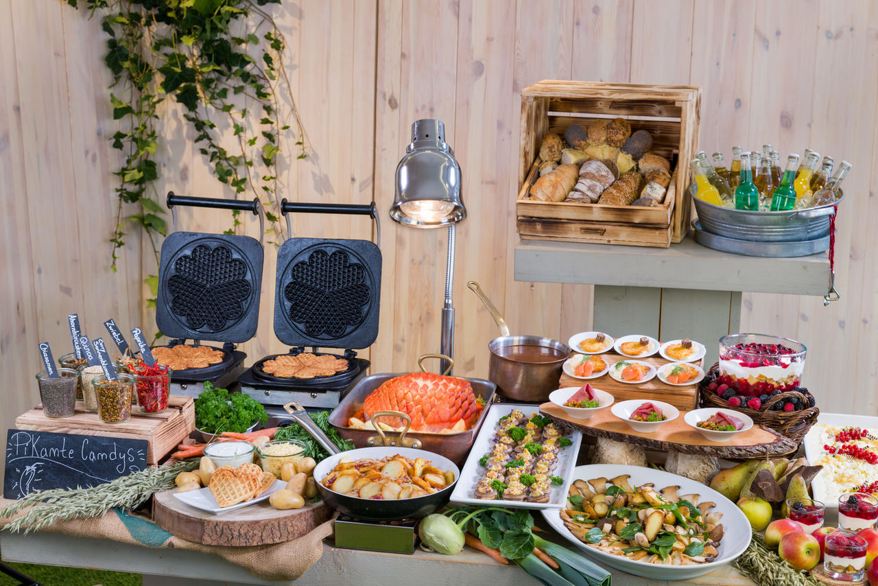 Ihr startet mit dem Basis-Arrangement und könnt es genau dort mit Upgrades verfeinern, wo es euch wichtig ist. Ein bisschen mehr Luxus bei den Vorspeisen? Oder doch lieber das große Dessert-Feuerwerk? Ihr entscheidet im gemeinsamen Dialog mit dem Beratungsteam, wo ihr Akzente setzen möchtet. So entsteht kein Buffet „von der Stange“, sondern eines, das wirklich zu euch und eurer Hochzeit passt.