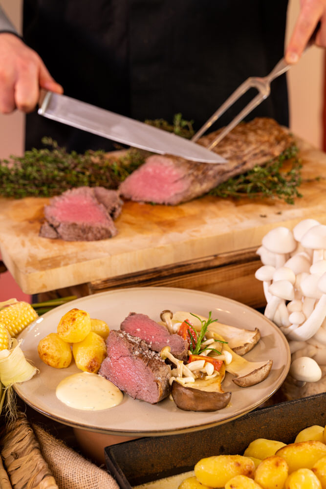 - Das „Herzstück“ ist die Basis: Genau das, was viele Hochzeiten brauchen: ein ehrliches, hochwertiges Buffet, reduziert auf das Wesentliche – geschmackvoll, sättigend und perfekt organisiert. Ideal für Paare, die Wert auf Qualität legen, ohne jedes Detail überinszenieren zu wollen.