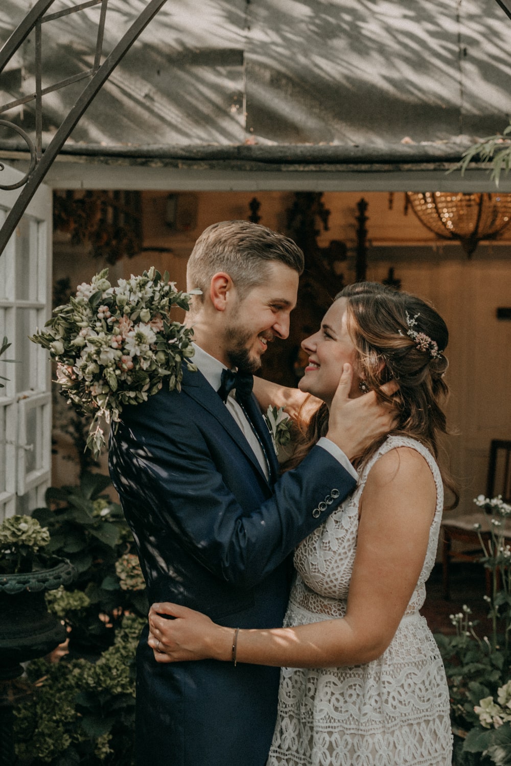 Die Location, die sich die beiden für ihre freie Trauung ausgesucht haben, wird heute wahrscheinlich schon wieder etwas anders aussehen, als wir in den wunderschönen Fotos von Patte Christoph bewundern können - das LADÜ restauriert nämlich in der eigenen Werkstatt die verschiedensten Antikmöbel und integriert sie in ihre Inneneinrichtung.