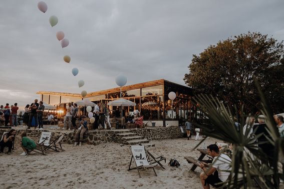 Kommt zum Strand: Mit traumhaftem Seeblick erwartet euch in Dormagen eine der schönsten Hochzeitslocations der Region. Überdacht und komplett eingehaust könnt ihr nun ganzjährig eure Hochzeit am Strand feiern – mit großzügigem Terrassenbereich, durchgängiger Glasfront und Seezugang.
