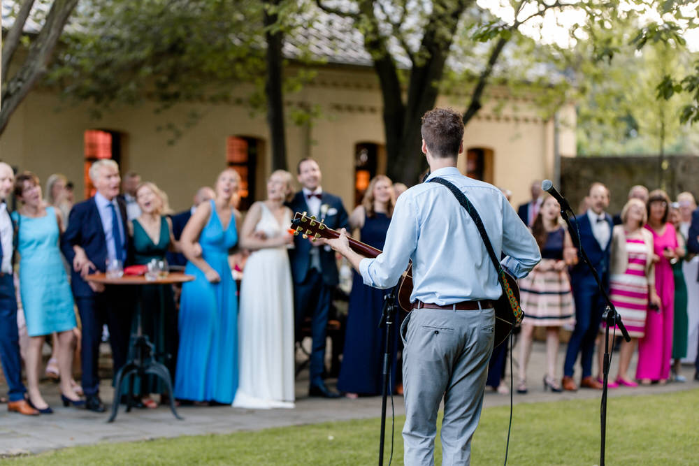 Elias hat die Erwartungen bei unserer Hochzeit weit übertroffen! Er hat uns sowohl musikalisch als auch menschlich und organisatorisch toll unterstützt. Selbst eine schwierige vorhersehbare Wetterlage hat ihm nichts ausgemacht und er hat spontan sowohl drinnen als auch draußen auf- und abgebaut. Zudem hat er sich super in unsere Gäste integriert und wir hatten das Gefühl, er passt einfach gut zur Gruppe. Ich kann mir im Nachhinein eine Hochzeit ohne Elias nicht vorstellen!